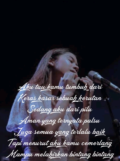 Aku tau kamu tumbuh dari keras kasar sebuah kerutan. Sedang aku dari pilu. Aman yang ternyata palsu. Juga semua yang terlalu baik. Tapi menurut aku kamu cemerlang. Mampu melahirkan bintang-bintang.